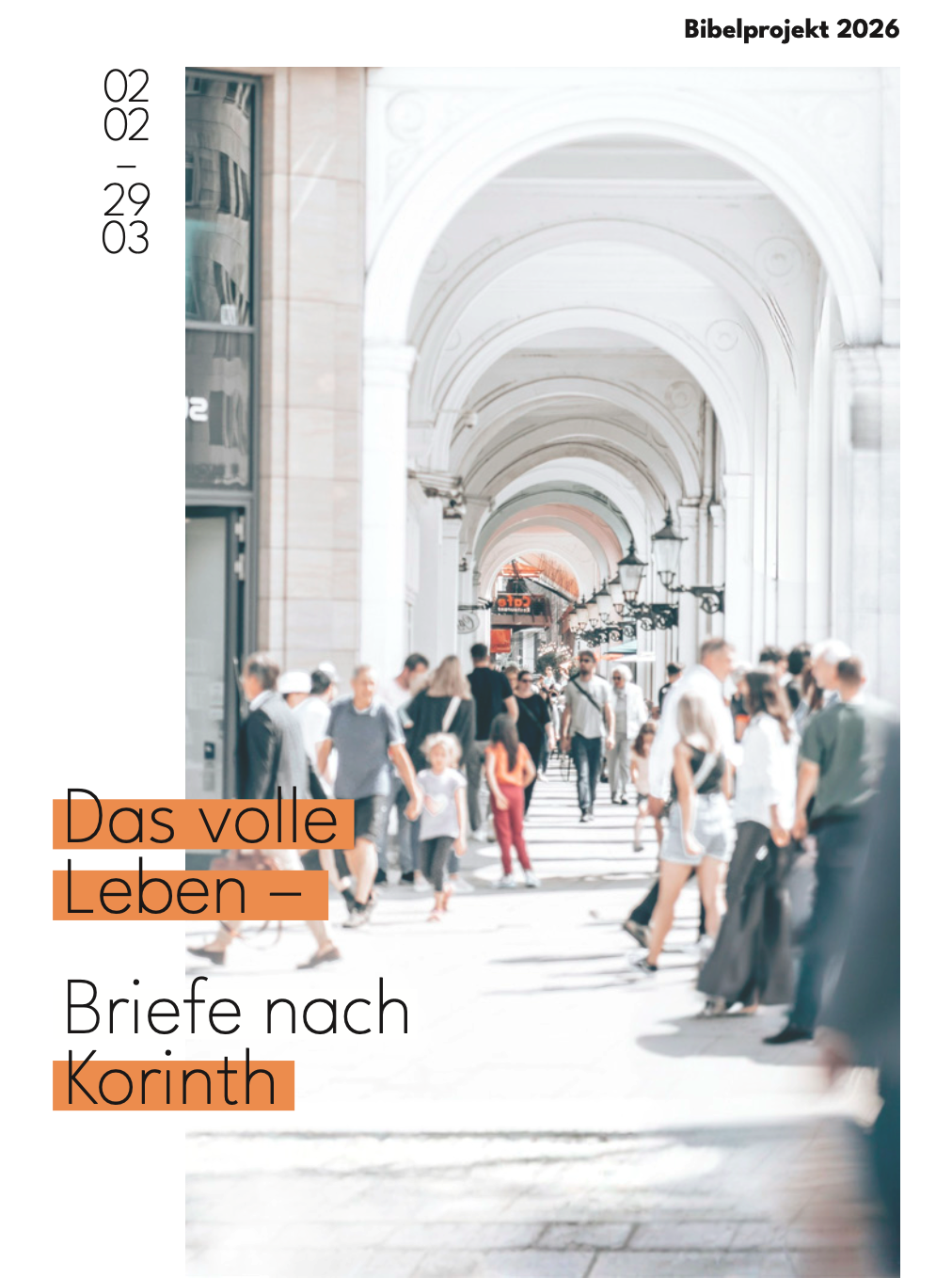 In diesem 8-wöchigen Bibelleseplan tauchst du in die beiden Korintherbriefe ein – zwei inspirierende Texte voller praktischer Impulse für deinen Alltag. Paulus schreibt ehrlich, leidenschaftlich und mit großer geistlicher Tiefe – und lädt dich ein, dein Leben neu an Gottes Maßstäben auszurichten. Woche für Woche entdeckst du neue Themen, die dein Leben herausfordern und bereichern können: von Hingabe, Freiheit und Liebe bis hin zur Hoffnung und unserem Blick auf die Ewigkeit. Finde heraus, was Gott dir persönlich durch diese Texte sagen möchte. Start: 02.02.2026, Ende: 29.03.2026